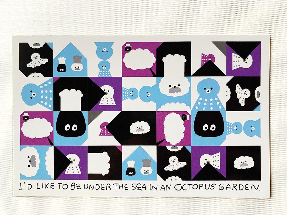 タコのスミの中の世界のような黒と水色と紫の不思議なデザインの紙が2枚づつ11種類入ってます。タイルのように並べて繋げると、大きなポスターになり、一枚づつを便箋や折り紙やお面つかったりもできます。そして全部の絵柄の入ったステッカーも一枚封入。2セット買って44枚、壁一面に貼るのがオススメです。